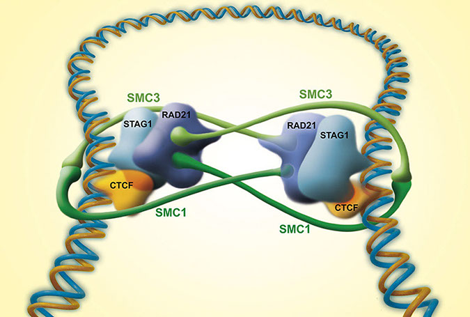A cohesin gyűrűk elhelyezkedése a DNS-huroknál a „double embrace”-modell szerint